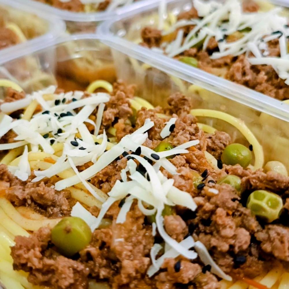 Espaguete ao molho bolonhesa com ervilhas frescas